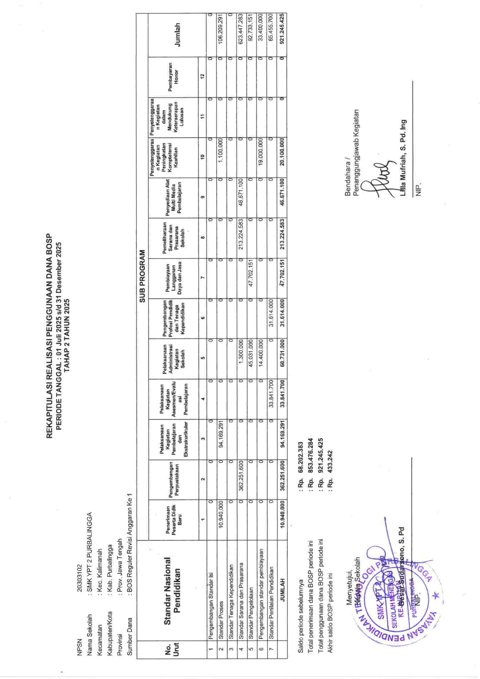 Rekapitulasi Penggunaan Dana BOS Tahap 2 tahun 2025