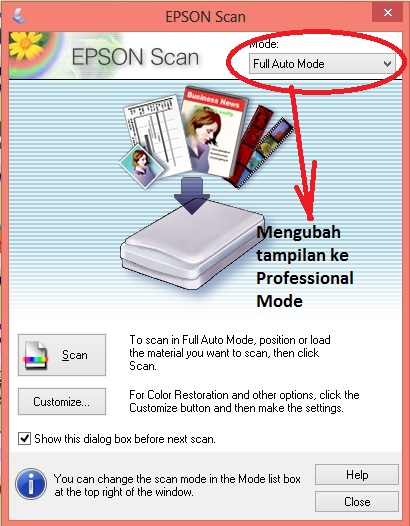 - Pilih tampilan Professional Mode untuk dapat mengatur tampilan,preview, dan pengaturan lain terkait output atau hasil scan.