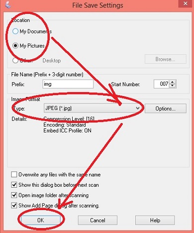 - Lakukan pengaturan yang lain seperti terlihat pada gambar. Yaitu mengatur lokasi penyimpanan, nama file, dll