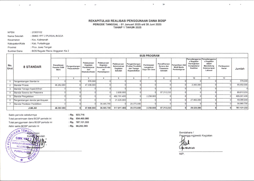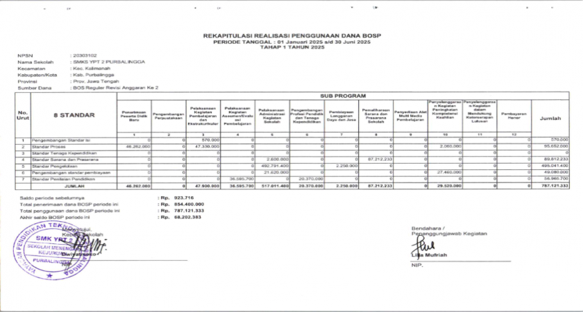 Rekapitulasi Penggunaan Dana BOS Tahap 1 tahun 2025